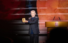 3月23日,中国篮球名人堂入堂人物“中国篮球先行者”吴成章的儿子吴忻水在入堂仪式上代领徽章。新华社记者 陈钟昊 摄