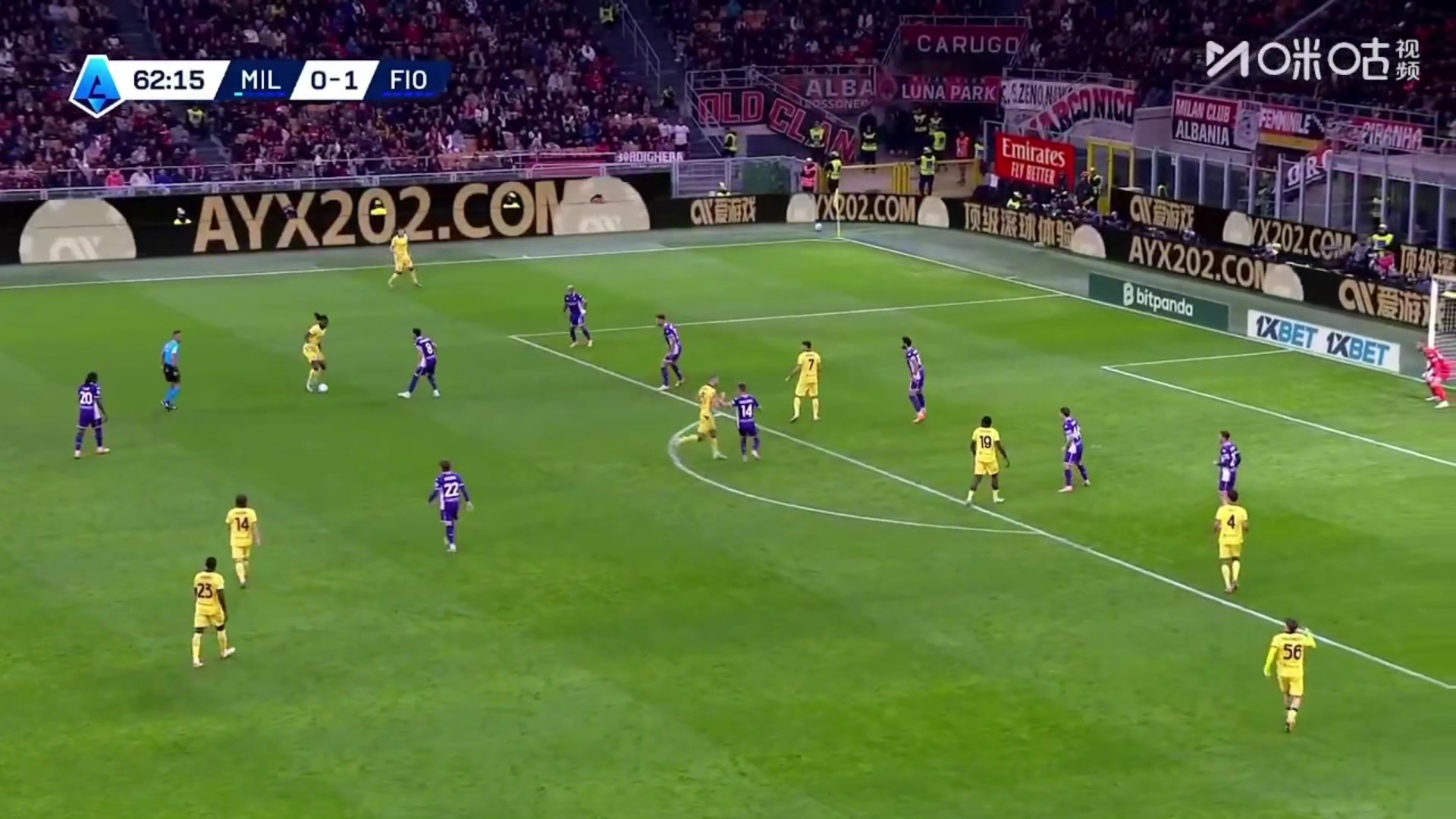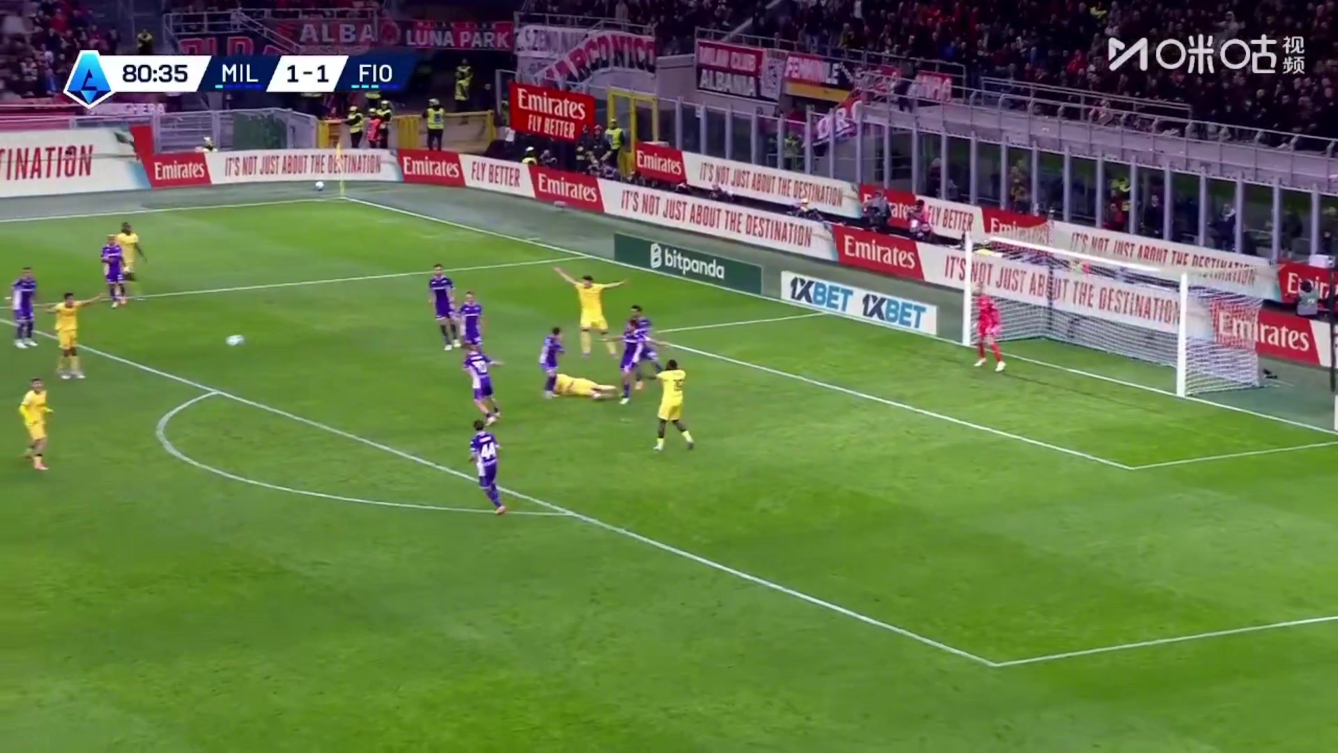 佛罗伦萨1-0领先米兰禁区内乱战戈森斯将球挡进球门