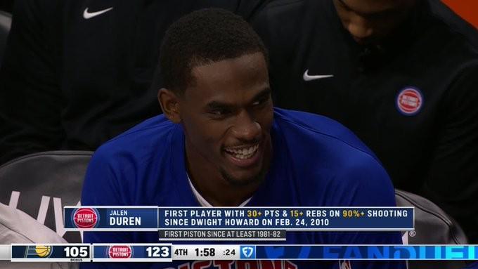 明日巨星,杜伦成为历史最年轻的以超90%命中率砍30分15板球员