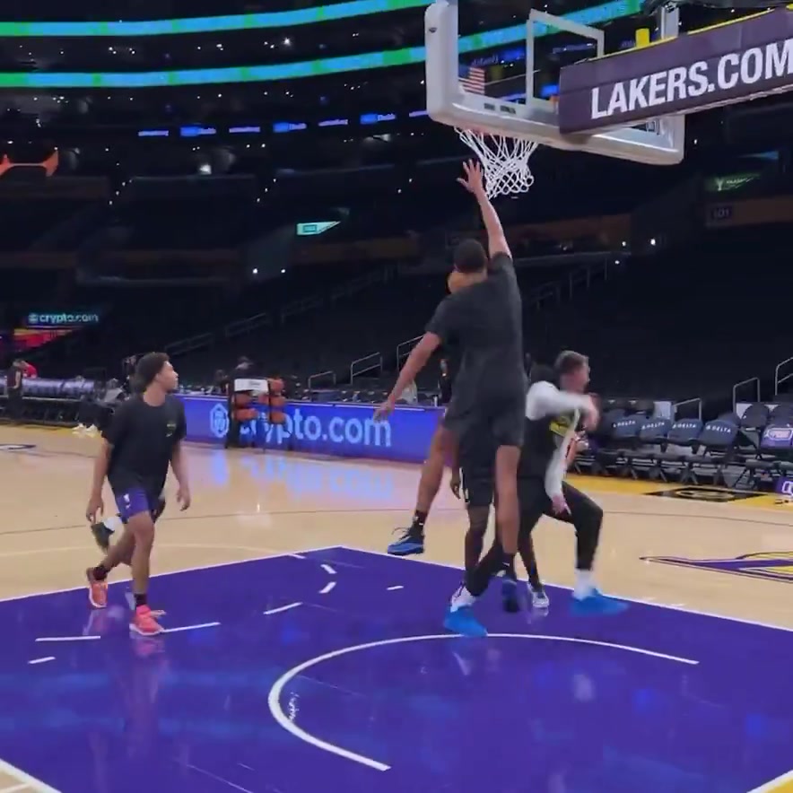 湖人前队友八村赛前整活浓眉后者在比赛中给了其一个大帽